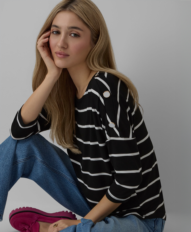 V novej kolekcii nechýbajú ani elegantné košele či pulóvre s nadčasovým vzorom pruhov. Vyberiete si radšej model s obliekaním cez hlavu alebo kardigán voľného strihu s ozdobnými gombíkmi? Inšpirujte sa a vytvorte si ideálnu súpravu, ktorá najlepšie zvýrazní váš individuálny štýl.