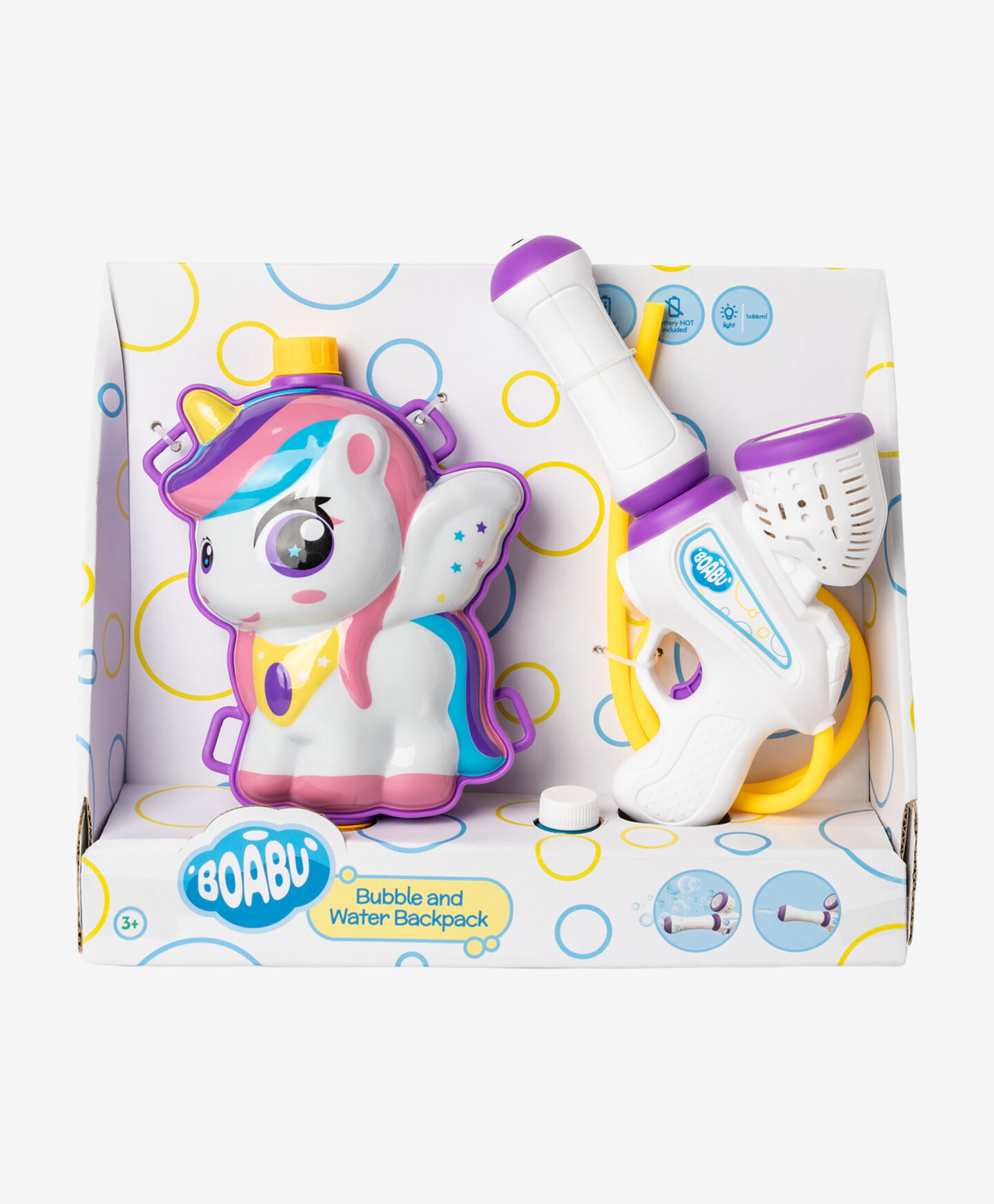 Batoh na bubliny a vodu – jednorožec zaručuje rozmanitú a nekonečnú zábavu! Vodná pištoľ sa ľahko používa, je bezpečná a účinná a nádrž na vodu sa dá ľahko doplniť z akéhokoľvek zdroja. Batoh má nastaviteľné popruhy, ktoré sa prispôsobia výške dieťaťa a umožňujú pohodlné nosenie počas hry. Na výber sú dva dizajny.