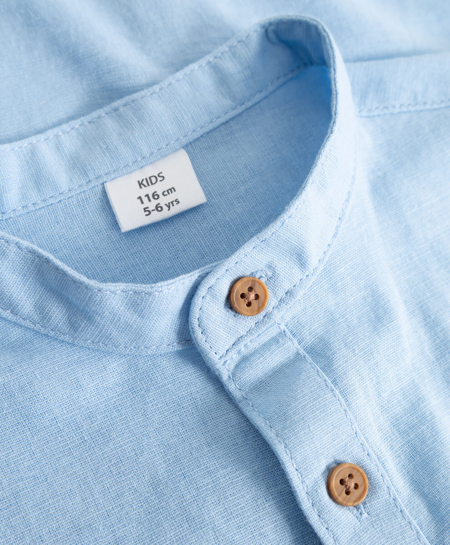 Táto svetlá džínsová chlapčenská košeľa je ideálna na rodinné stretnutia. Prídavok ľanu zaisťuje priedušnosť. Hnedé gombíky a mini stojačik kontrastujú s modrou farbou košele, čo jej dodáva formálnejší a modernejší vzhľad. Praktické gombíky na rukávoch umožňujú jednoduché vyhrnutie a zapínanie, čím dodávajú ležérnejší vzhľad. Tričko sa dobre hodí k džínsom aj k elegantným nohaviciam.