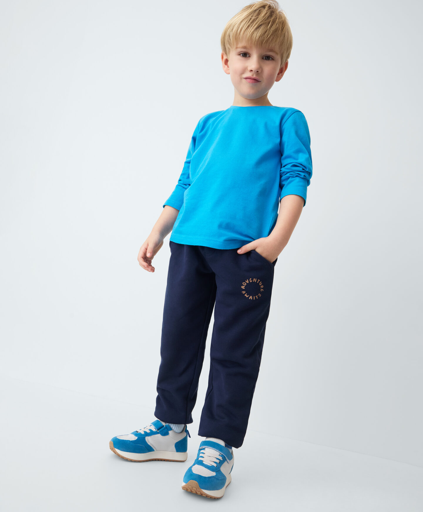 Chlapčenské nohavice s elastickými manžetami, ideálne na relax a objavovanie mesta! V čiernej farbe, s potlačou na jednej nohavici inšpirovanou mestským štýlom. Voľný strih z nich robí pohodlnú voľbu na popoludnia po škole, hranie vonku alebo pokojný deň doma.