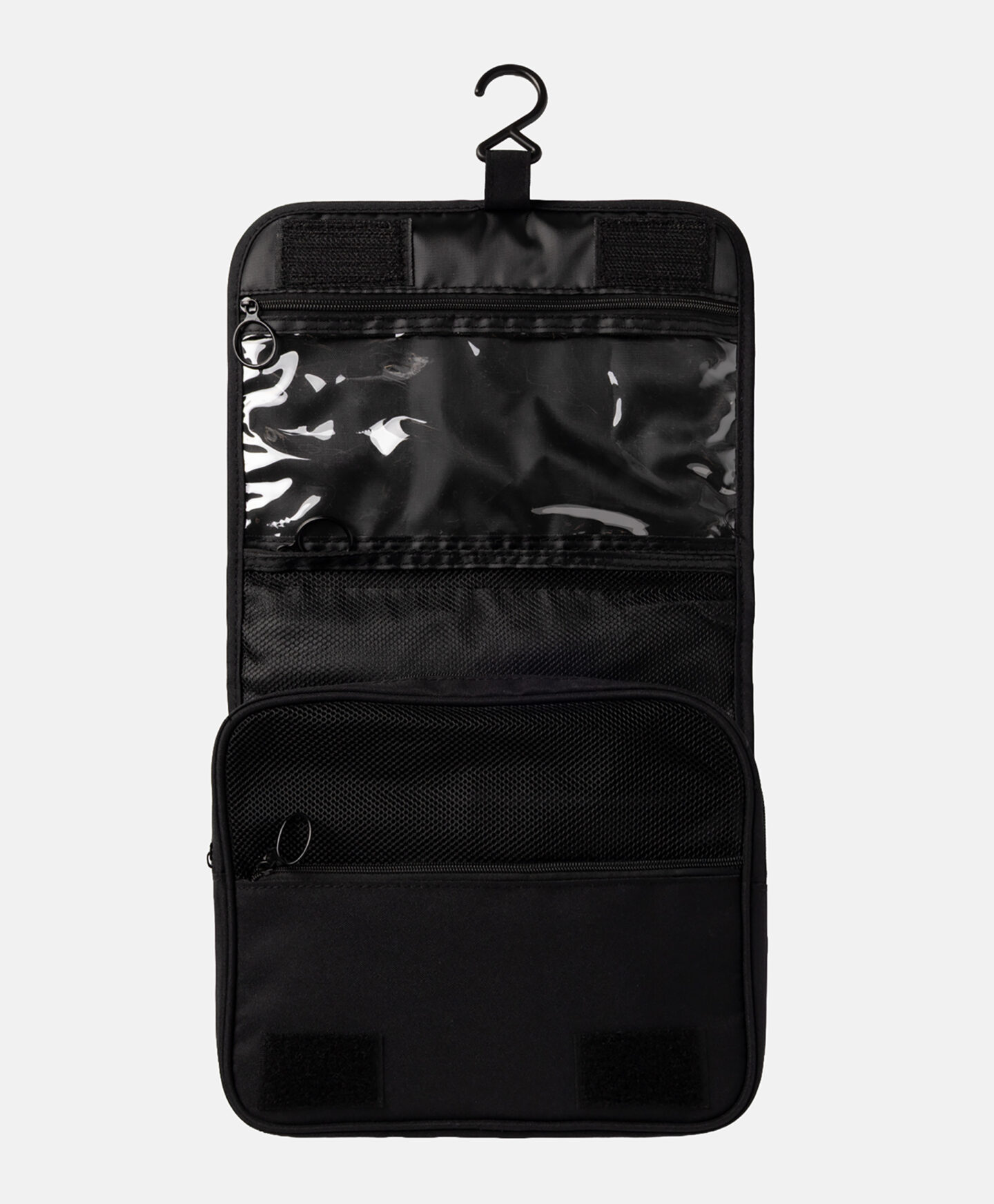 Táto čierna kozmetická taštička s vešiakom je nevyhnutnosťou na cestovanie na dovolenku. Množstvo priehradiek, sieťované vrecká a elastické popruhy zabezpečujú, že každá vec má svoje určené miesto. Kozmetická taštička je vyrobená z materiálu, ktorý sa ľahko udržiava v čistote.