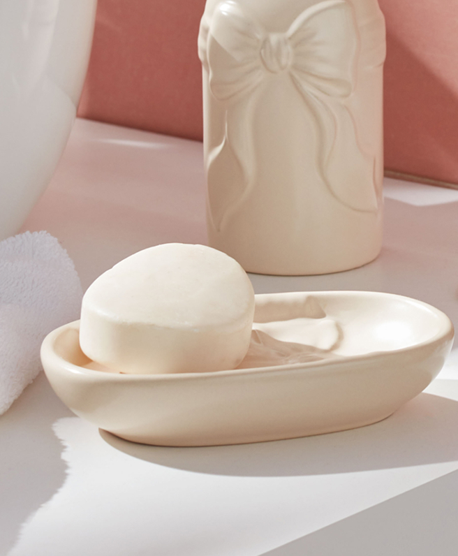 - Keramická mydlovnička – elegantná a odolná mydlovnička, ktorá dodá vašej kúpeľni elegantný vzhľad.