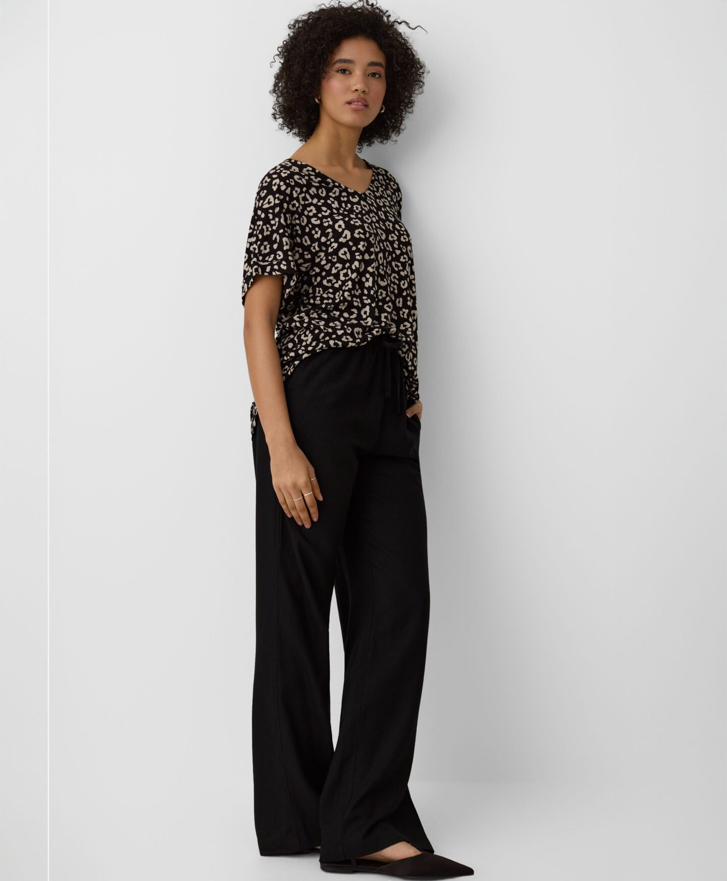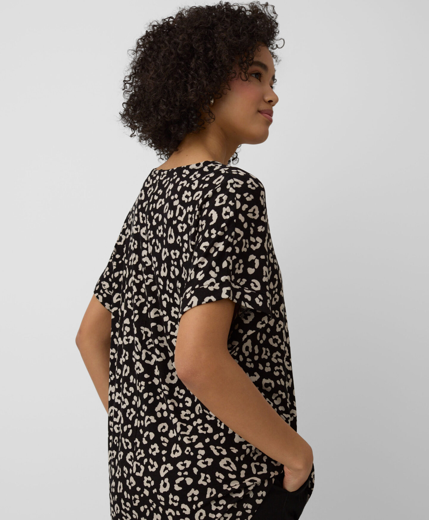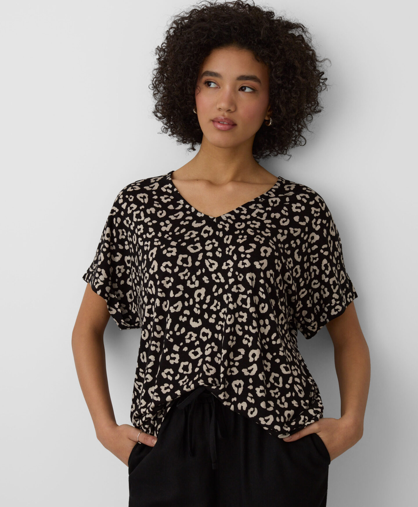 Táto dámska blúzka s výstrihom do V zo 100 % viskózy v sebe spája pohodlie a všestrannosť. Skombinujte ho s vašimi obľúbenými džínsami alebo elegantnejšími chino nohavicami či cigaretovými nohavicami. Je to perfektná voľba do kancelárie, na rýchle nákupy alebo na rodinný výlet.