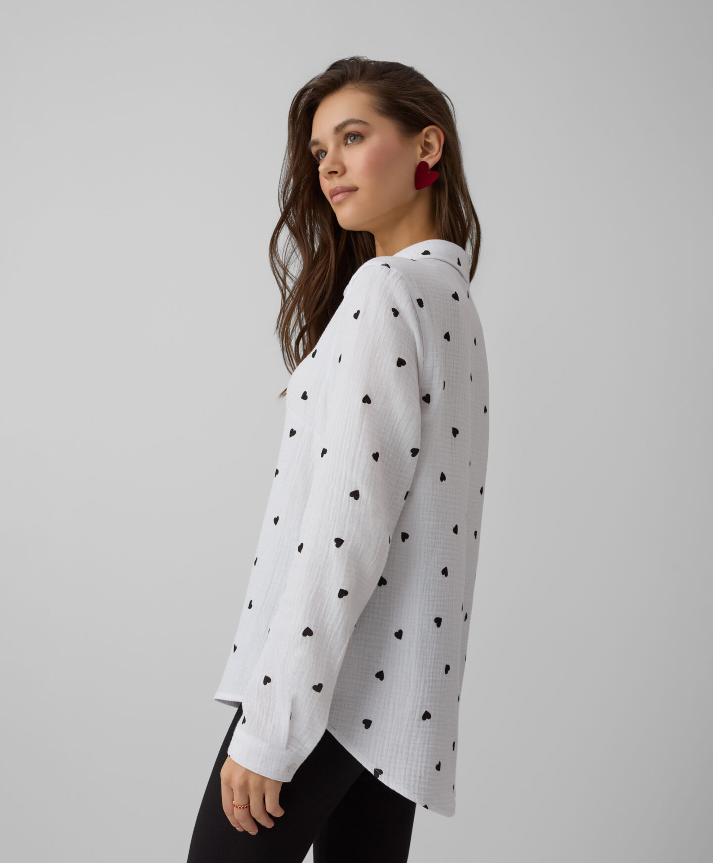 Dámska košeľa zo 100 % bavlny s jemným vzorom si získa srdce milovníčok klasického štýlu. Mušelínová tkanina je ľahká, priedušná a neuveriteľne mäkká, vďaka čomu je košeľa ideálna na rôzne príležitosti. Jej minimalistický dizajn sa hodí k rôznym outfitom – od ležérnych až po elegantnejšie štýly.