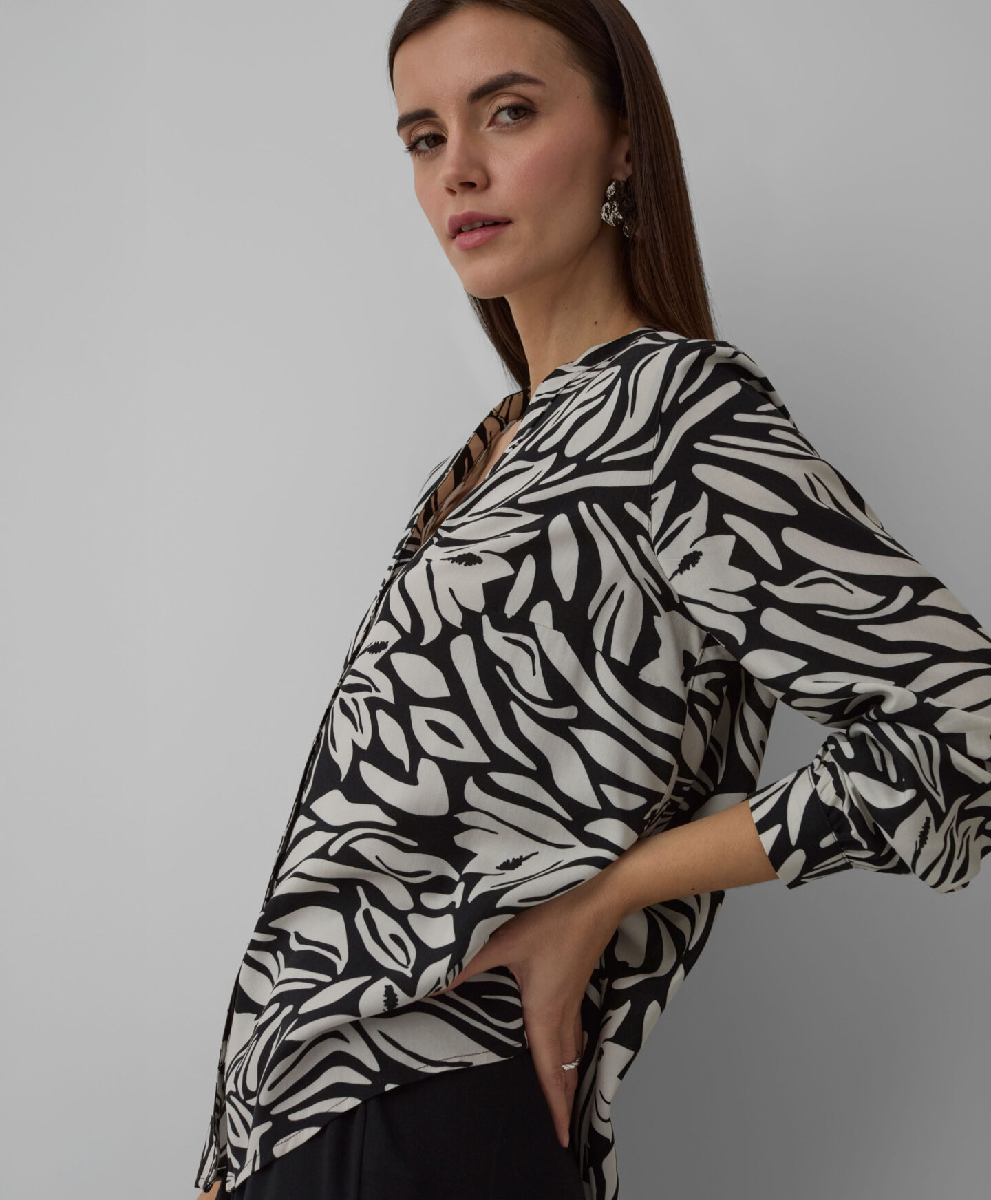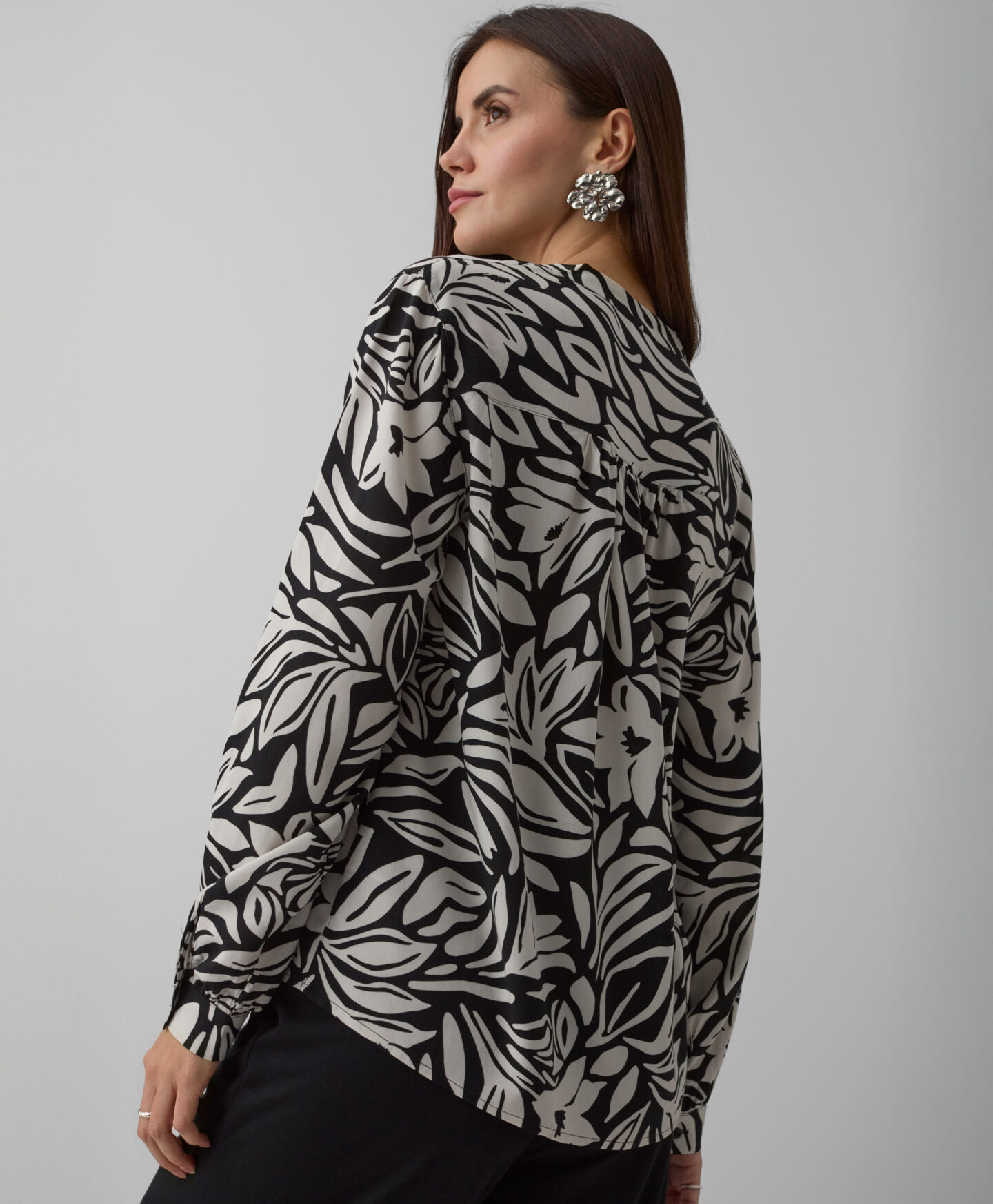 Dámska košeľa zo 100 % viskózy je kombináciou elegancie a pohodlia. Krásne sa kombinuje so šperkami a doplnkami. Kvetinový vzor dodáva košeli charakter a vďaka nemu sa perfektne hodí k obyčajným nohaviciam. Môžete ju kombinovať s džínsami aj s elegantnejšími kúskami šatníka, ako sú chino nohavice alebo cigaretové nohavice.