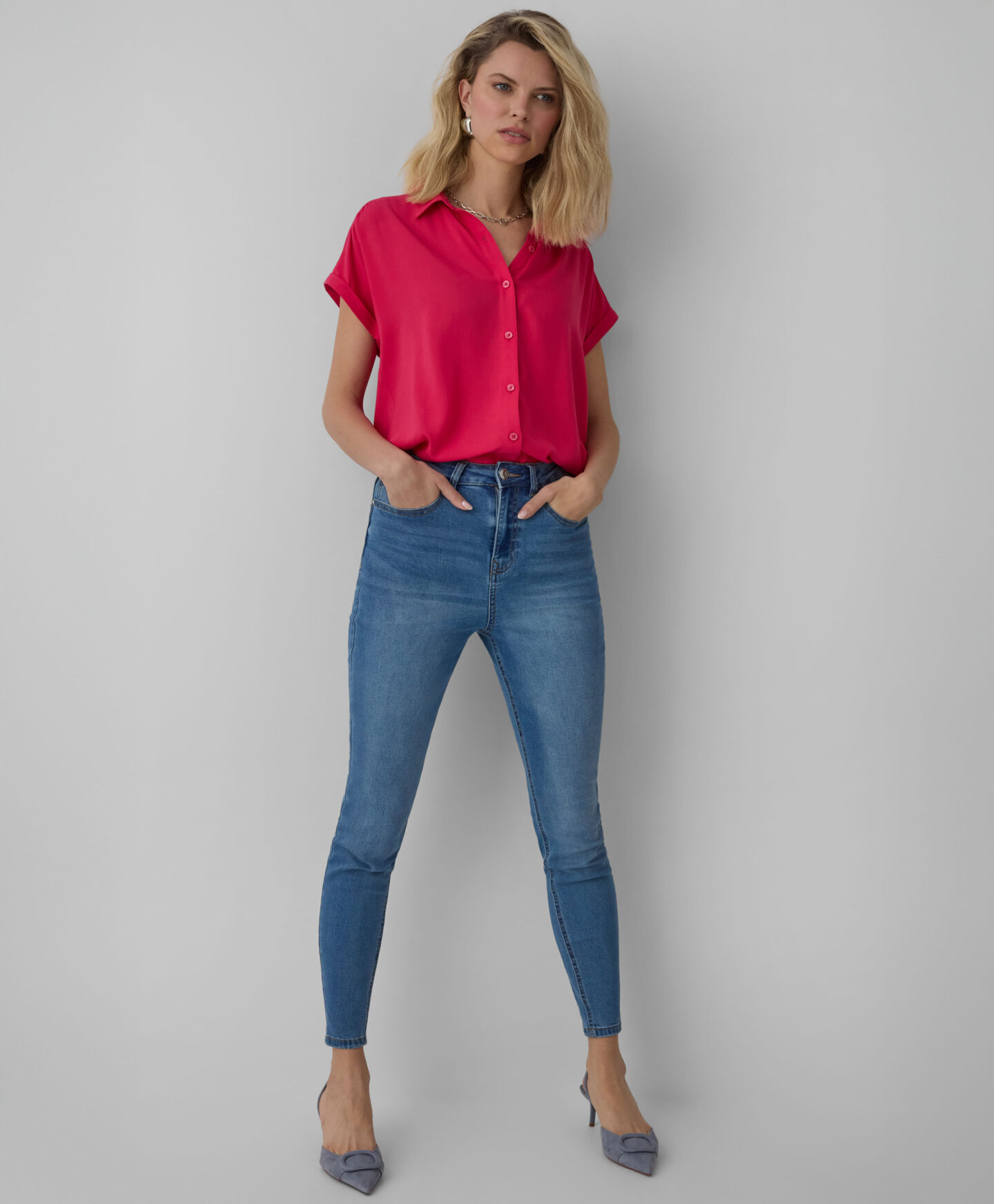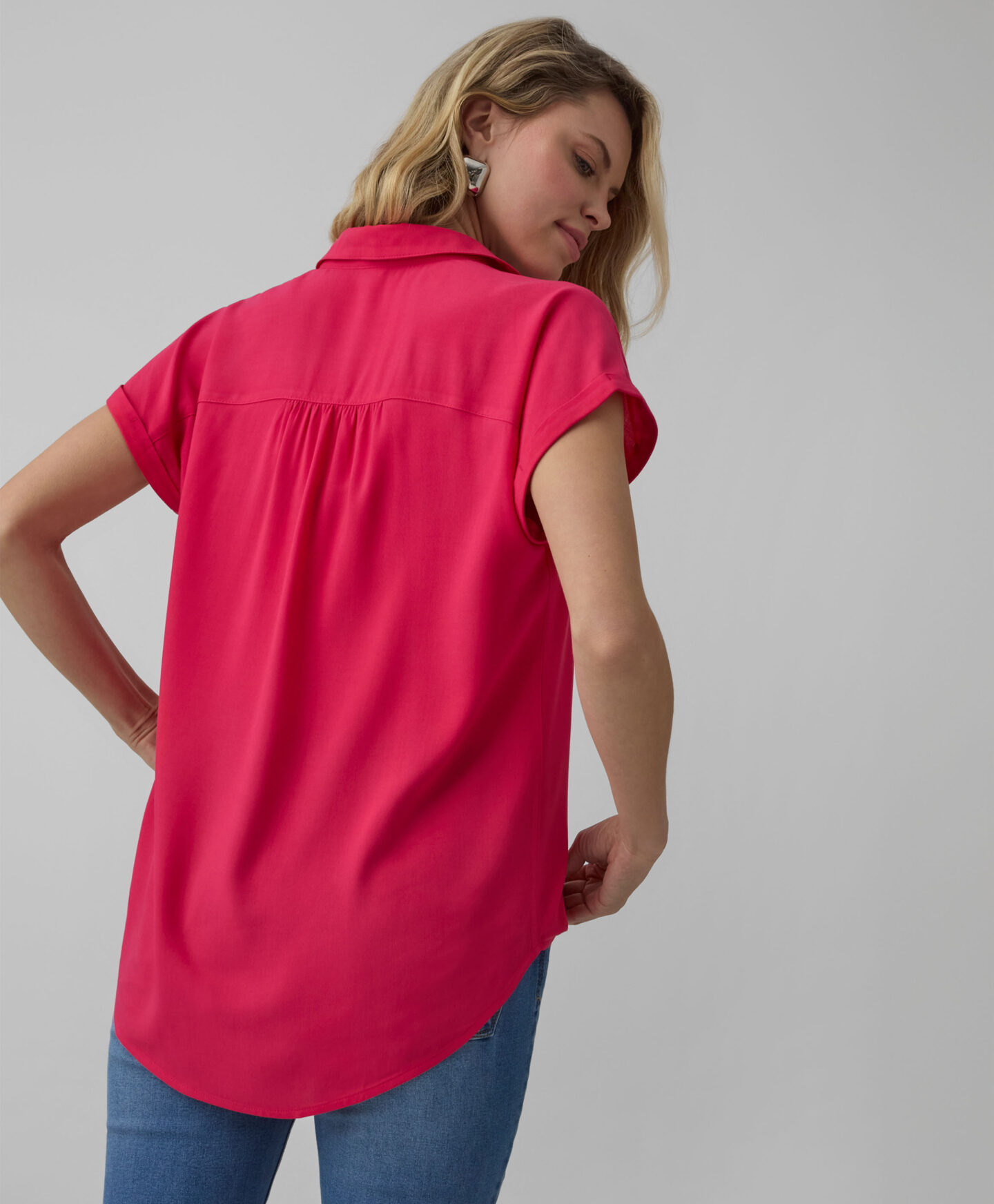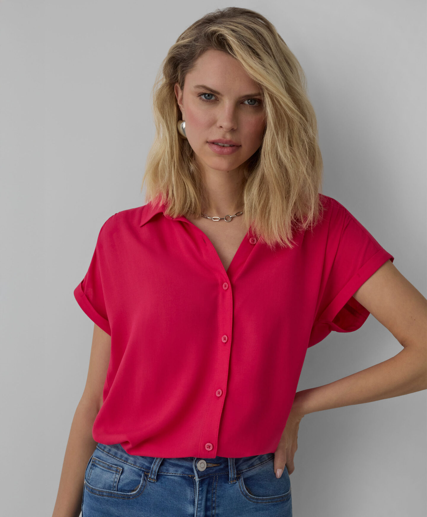 Dámska košeľa zo 100 % viskózy vyniká farbou, ktorá oživí každý outfit. Má pohodlný strih, zapínanie na gombíky vpredu a krátke rukávy. Je ľahká, splývavá a stvorená na vrstvené kombinácie. Nesmie chýbať vo vašom šatníku!