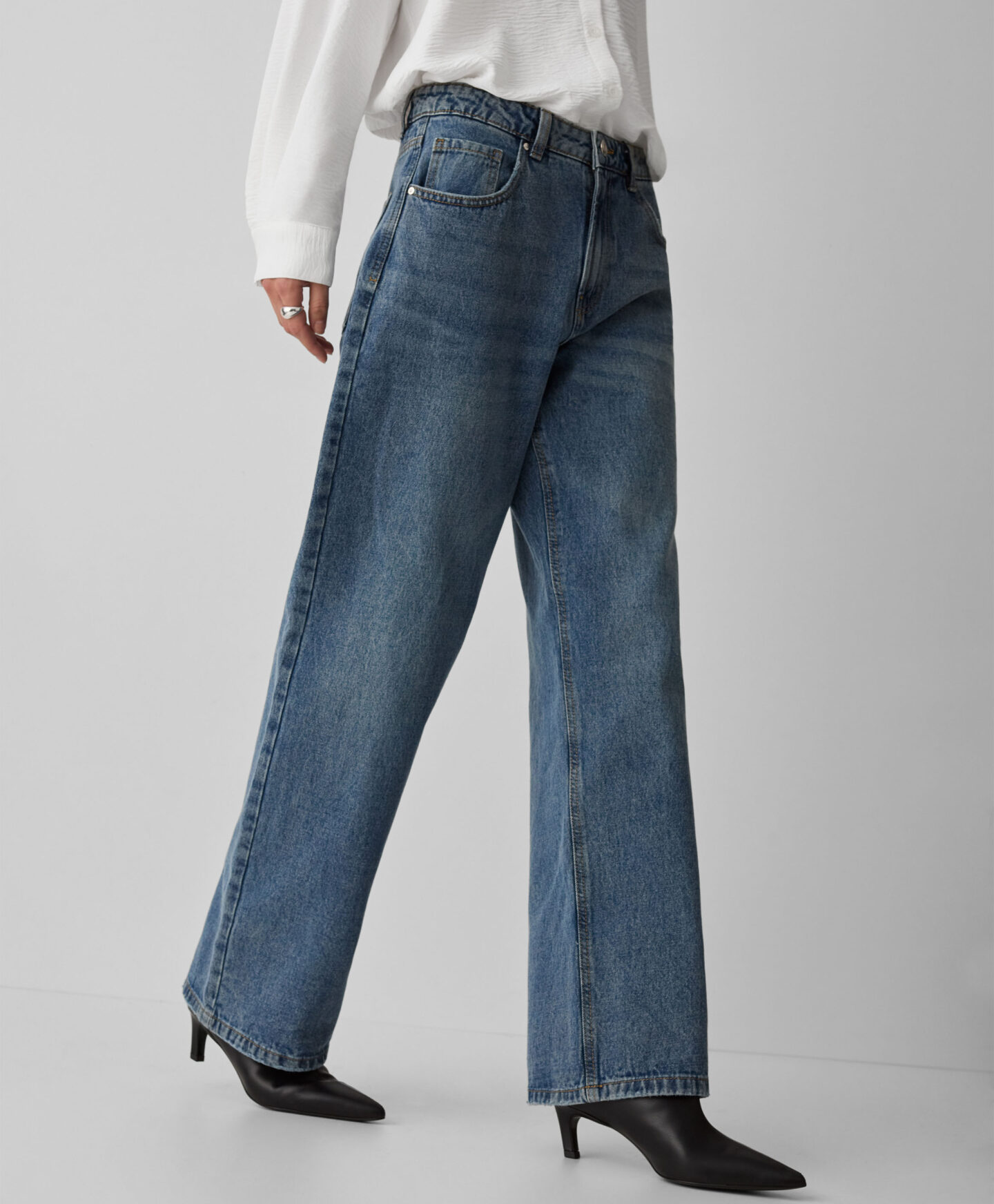 Dámske džínsy zo 100 % bavlny so širokými nohavicami sú módnym hitom tejto sezóny. Vyzerajú skvele s priliehavým topom aj vo viac voľnom strihu. Klasická farba vám umožní kombinovať ich s mnohými kúskami z vášho šatníka. Sú všestranné a pohodlné.