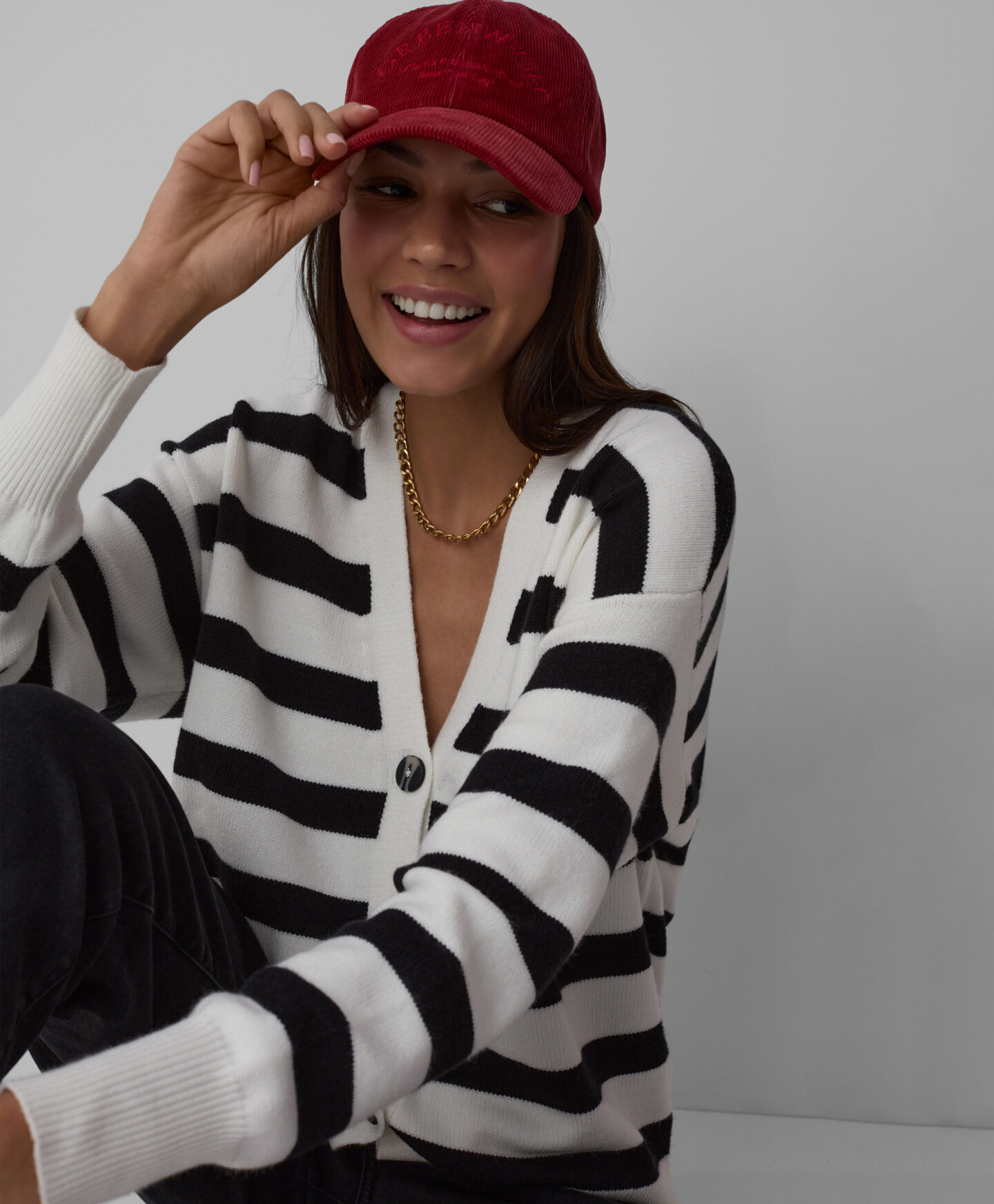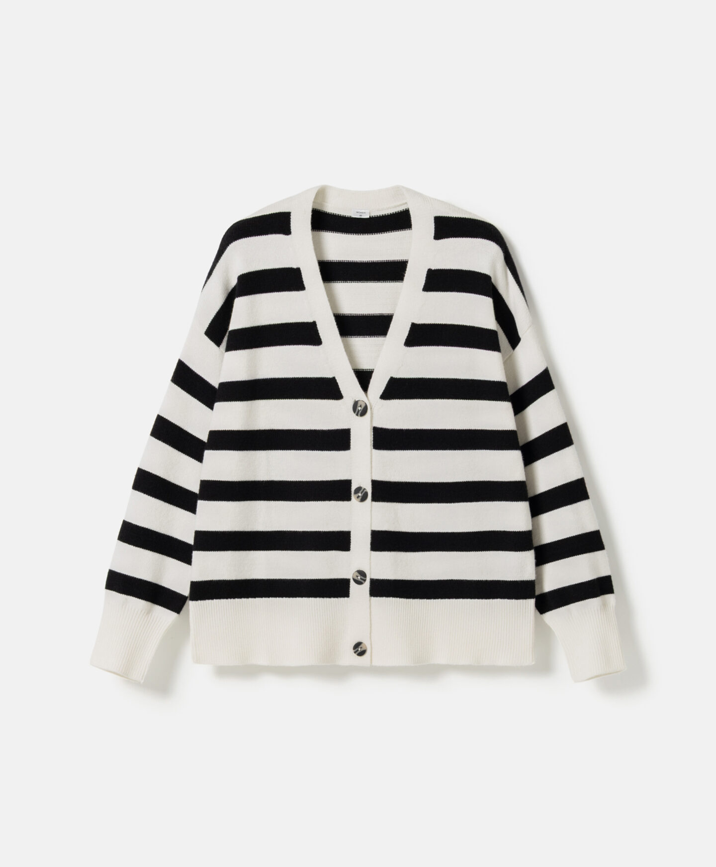 Dámsky kardigán s čiernobielymi pruhmi