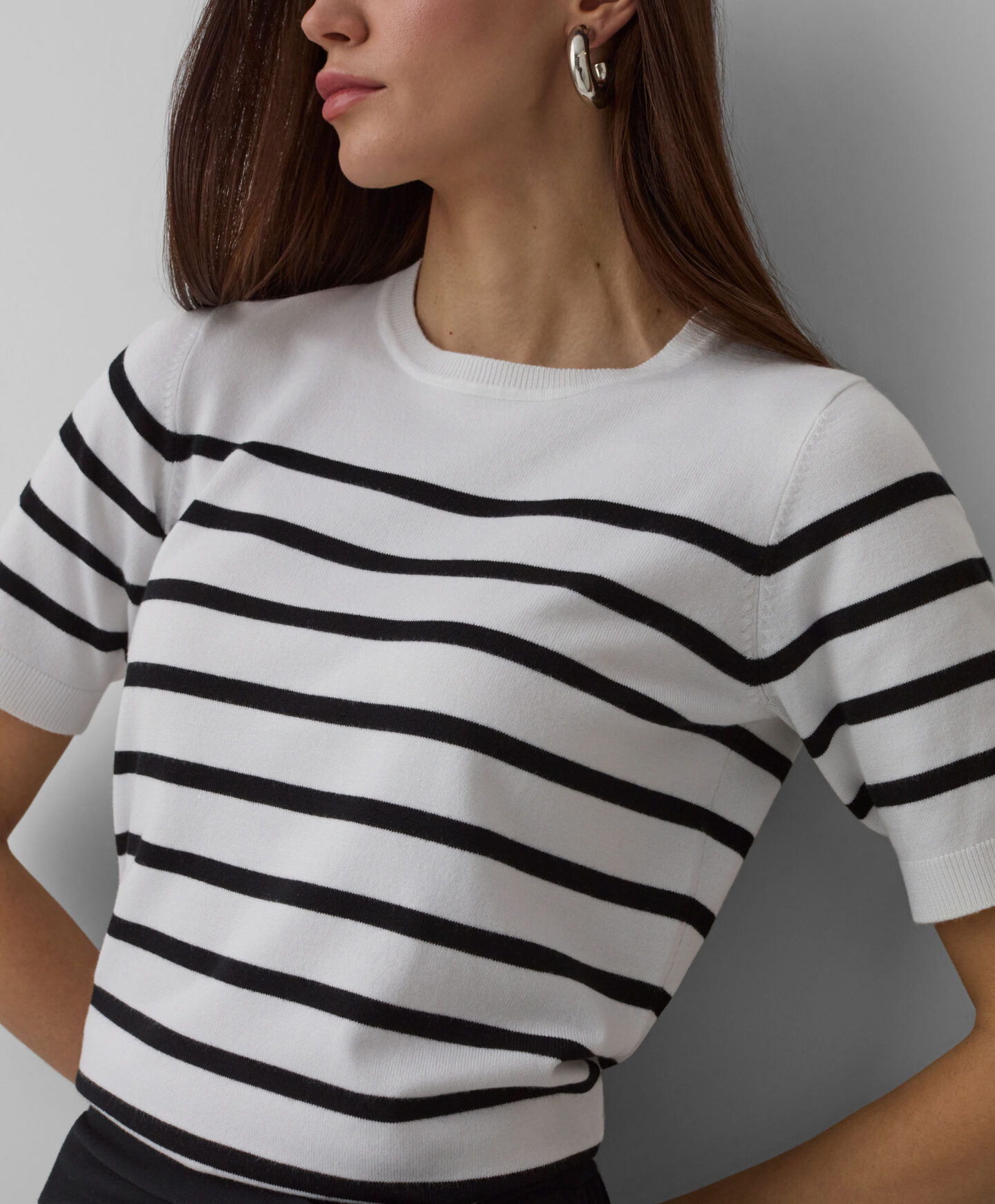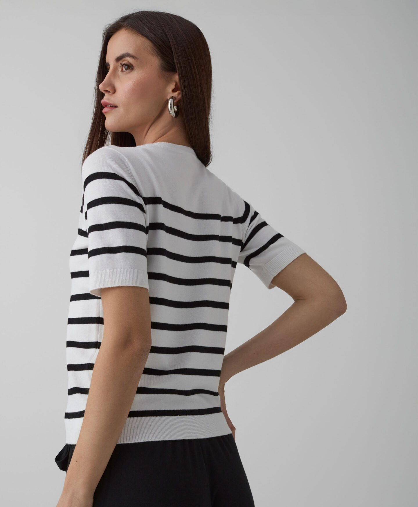 Dámsky pruhovaný pulóver s krátkym rukávom je spoľahlivou nevyhnutnosťou šatníka. Perfektná voľba v prechodnom období. Klasický pruhovaný vzor sa bude krásne hodiť k väčšine oblečenia vo vašom šatníku. Krátke rukávy ponúkajú množstvo možností štylizácie – môžete ho nosiť samostatne alebo v kombinácii s bundou. Univerzálny strih sa perfektne prispôsobí rôznym typom postavy. Pulóver sa ľahko udržiava, zachováva si farbu a tvar aj po mnohých praniach.