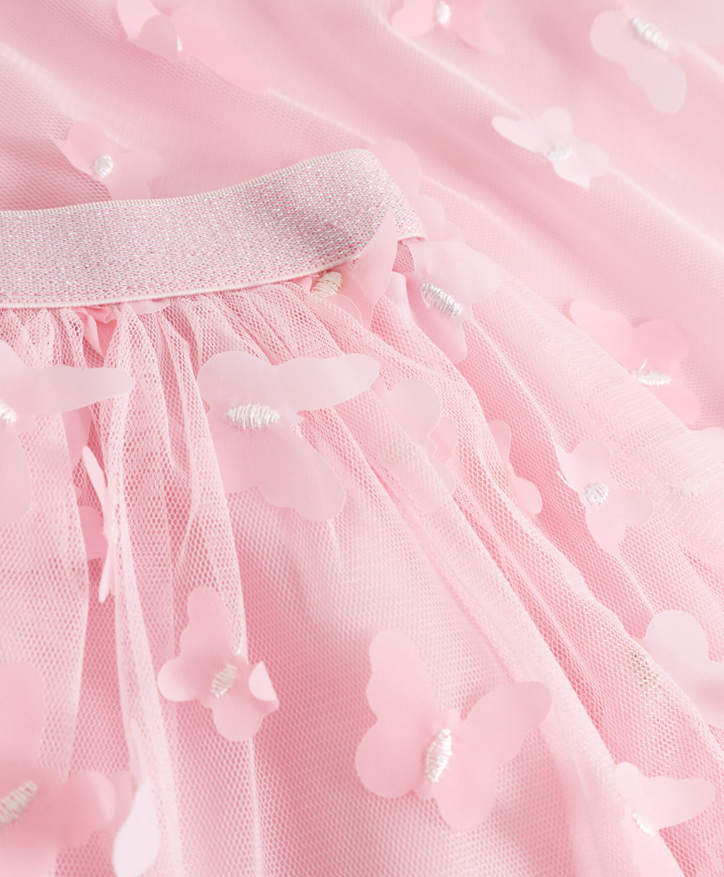 Táto dievčenská tylová sukňa s 3D motýľmi umožní vášmu dieťaťu vyjadriť svoj individuálny štýl. Je splývavá a pohodlná a elastický pás zaisťuje perfektné prispôsobenie každej postave. Tylová vrstva dodáva sukni objem a ľahkosť, zatiaľ čo vyšívané motýle jej dodávajú rozprávkový nádych. Perfektne sa hodí k pančuchám alebo legínam a bude hviezdou outfitu v teplejších dňoch. Tepláky tvoria súpravu s mikinou z kolekcie.