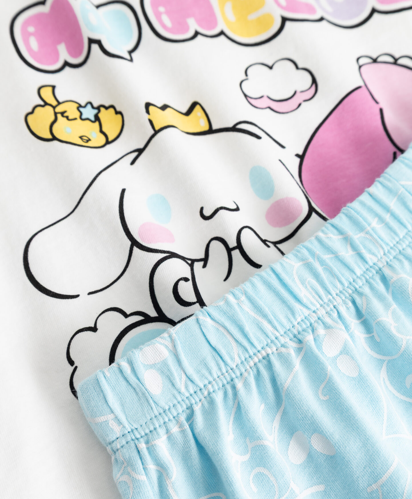 Dievčenské pyžamo My Melody & Cinnamoroll zo 100 % bavlny pozostáva z trička a šortiek. Skvelá voľba na teplejšie noci. Materiál je príjemný k pokožke a jemne zahalí dieťa na spánok, zatiaľ čo klasický strih zaručuje slobodu pohybu. V ponuke je na výber viacero farieb.