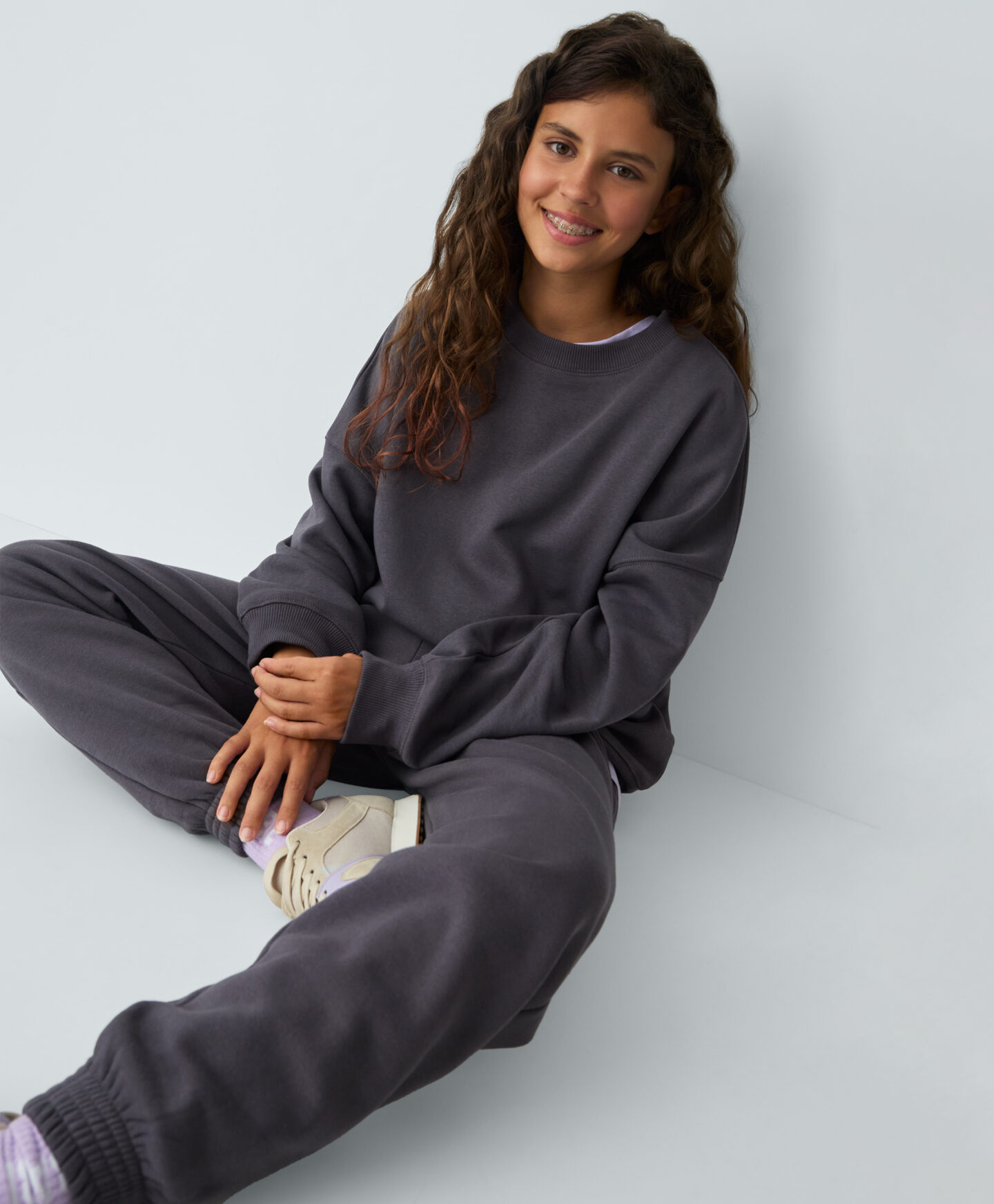 Dievčenské tepláky z bavlny s trendy oversized strihom sú túto sezónu nevyhnutnosťou. Sú mäkké, pohodlné a ponúkajú úplnú slobodu pohybu. Ideálne do školy, na športové aktivity alebo víkendové outdoorové aktivity. Na výber je aj mikina v rovnakej farbe.