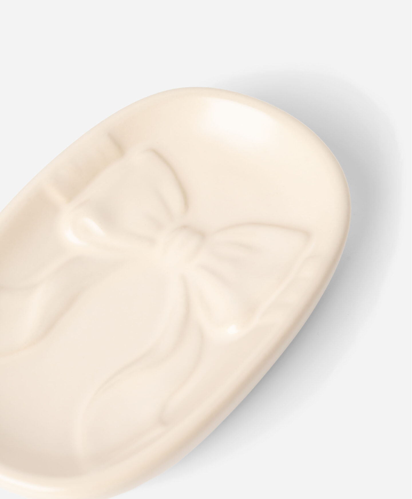Keramická miska na mydlo s mašličkou je ideálna na uloženie tuhého mydla. Vďaka ozdobnej mašličke sa miska dokonale hodí k ostatným kúpeľňovým doplnkom z kolekcie. Jej premyslený tvar pomáha efektívne odvádzať vodu, čím predchádza neporiadku a udržiava mydlo čisté.