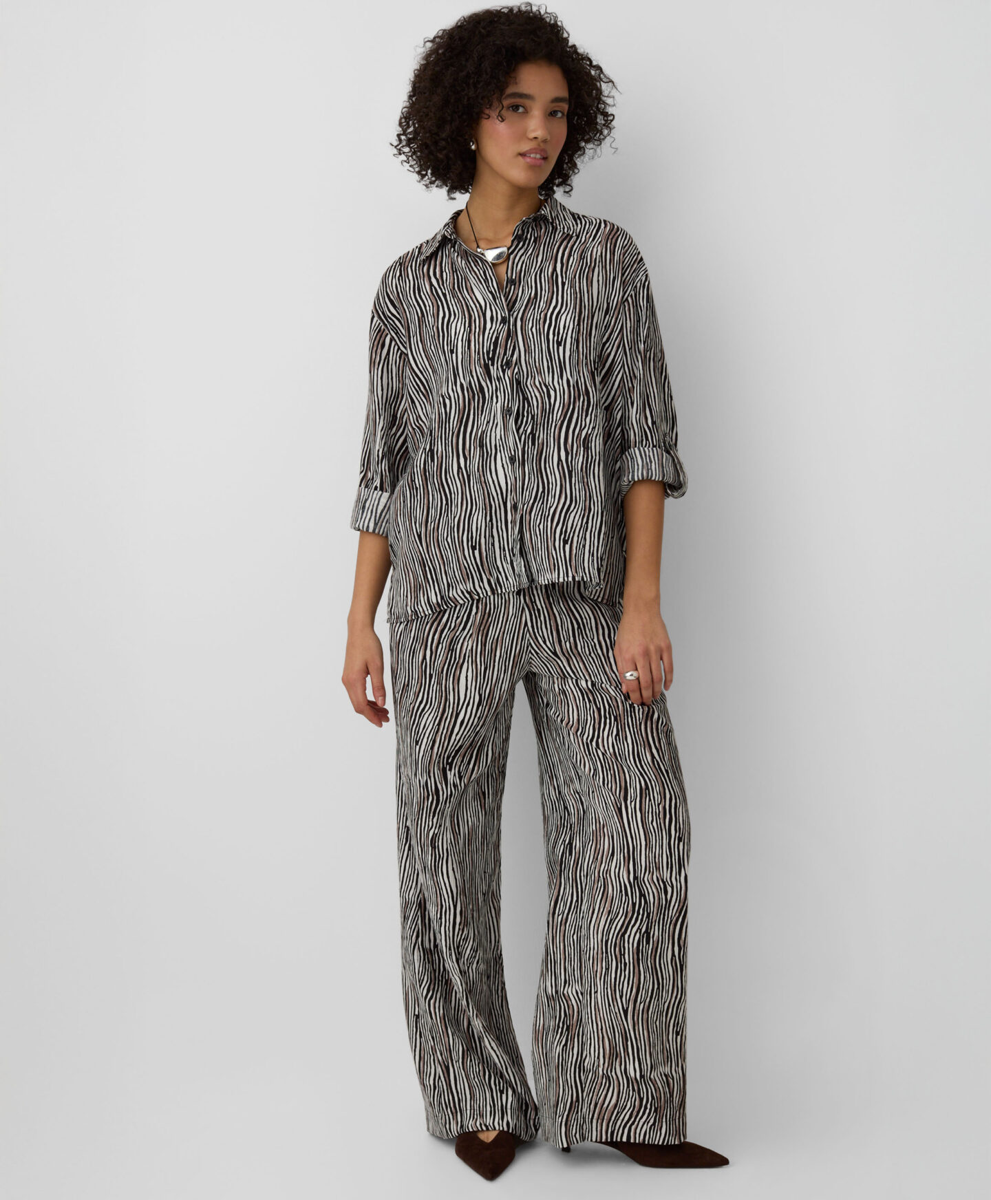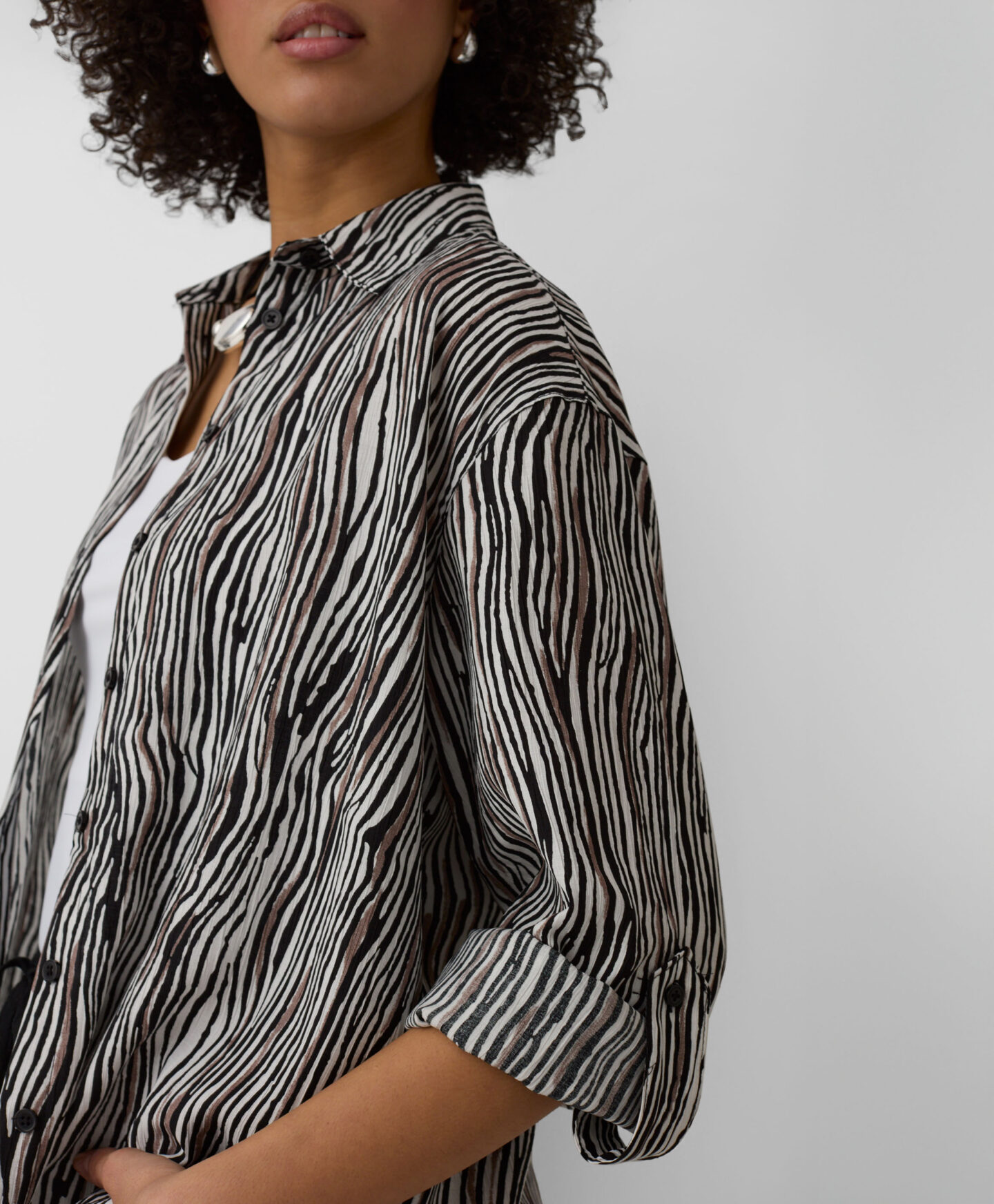 Koszula damska z wysoką zawartością wiskozy sprawdzi się w ciepłe dni. Jest zwiewna, lekka i pozwala skórze oddychać. Miękki materiał miło otuli Cię, oferując komfort przez cały dzień noszenia. Koszula świetnie będzie prezentować się z szortami, ulubionymi jeansami czy bardziej eleganckimi spodniami.