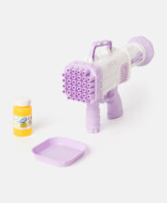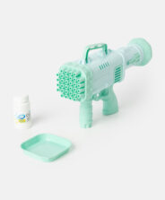 Modrá bublinková pištoľ má 32 otvorov, ktoré vám umožnia vytvoriť tisíce krásnych mydlových bublín jedným kliknutím. Je ľahká, ergonomická a ideálna na hranie v parku, záhrade, na ihrisku alebo počas rodinných vonkajších akcií. Súprava obsahuje nádobu na bublinkový roztok a zásobu roztoku.