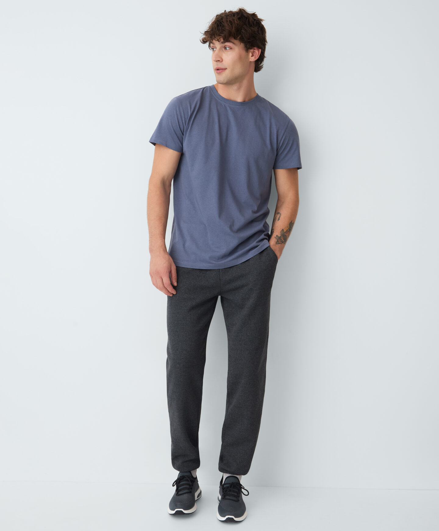 Pánske modré tričko s krátkym rukávom, vyrobené zo 100 % bavlny, je neodmysliteľnou súčasťou každodenného outfitu. Je ľahké, mäkké na dotyk a priedušné. Ideálne pod mikinu alebo pulóver, počas prvých jesenných dní. Príjemný materiál a tlmená farebná schéma ponúkajú úplnú slobodu kombinovať tričko s ostatným oblečením vo vašom šatníku.