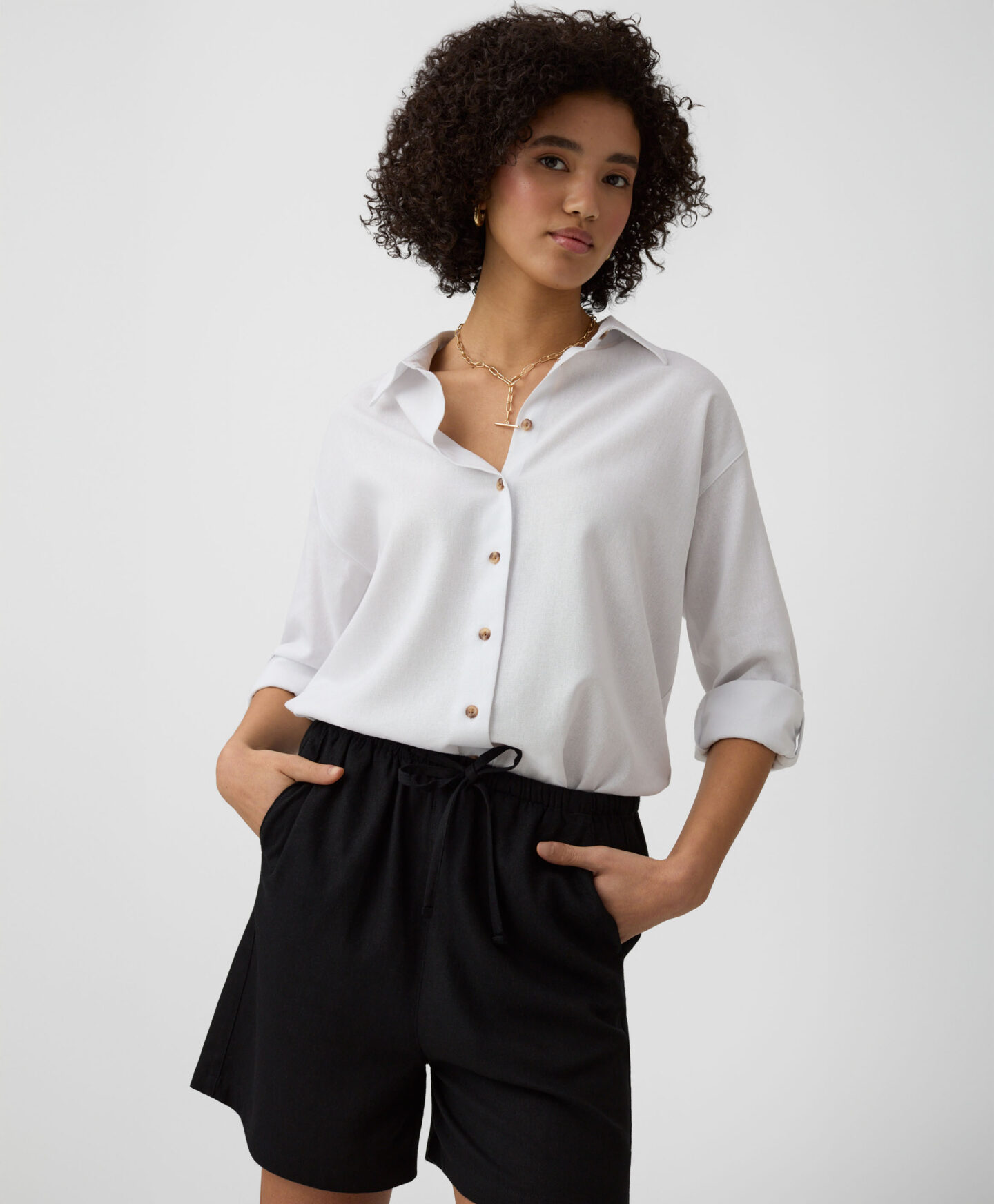Szorty damskie w uniwersalnym kolorze to podstawa garderoby. Są lekkie, przewiewne i miłe dla skóry. Ponadczasowa czerń pozwoli dowolnie miksować je z koszulkami, bluzkami czy topami z Twojej szafy, tworząc niezliczone stylizacje.