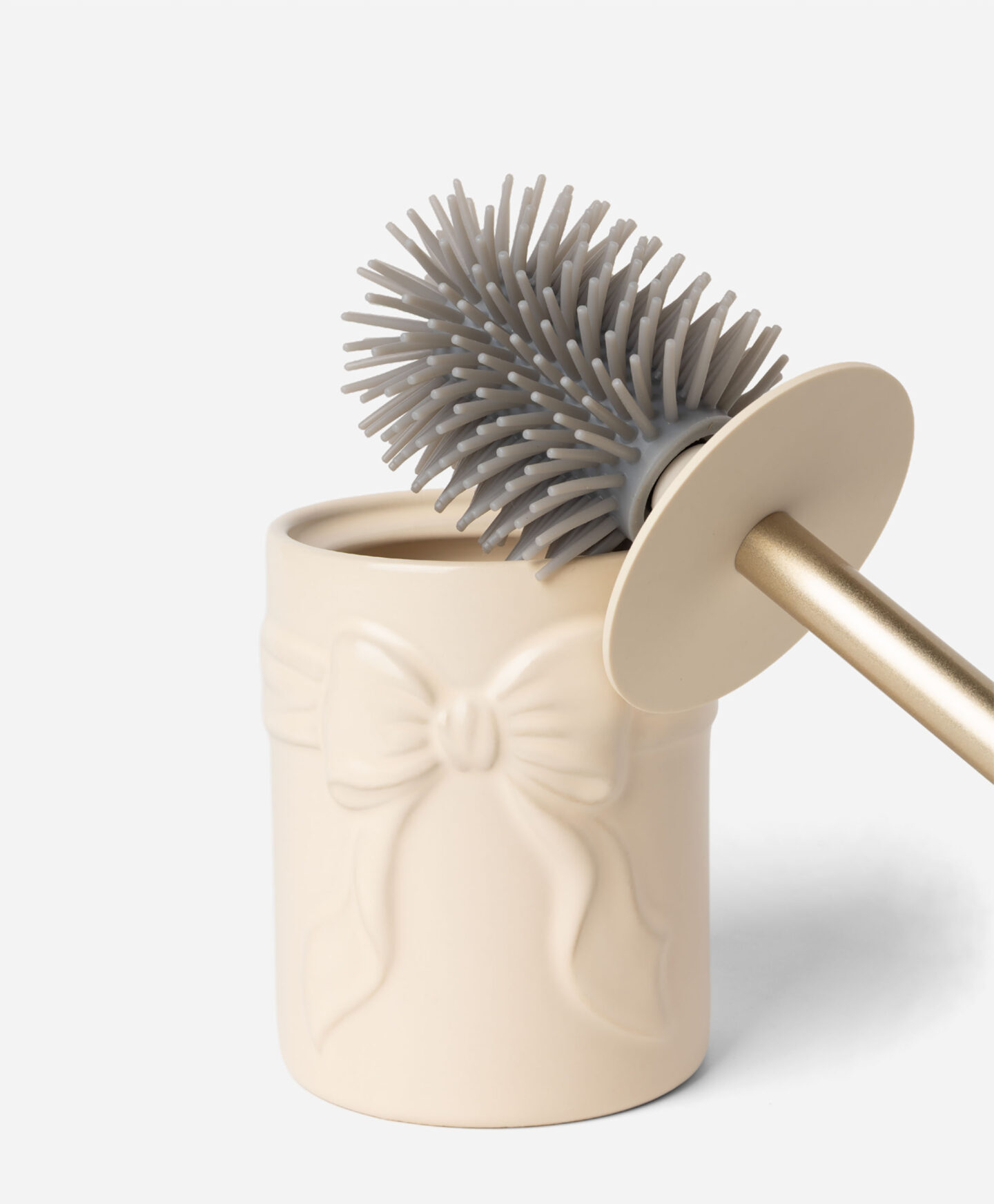 Toaletná kefa s mašličkou je súčasťou súpravy s miskou na mydlo, dávkovačom mydla a držiakom na zubnú kefku z najnovšej kolekcie. Estetická úprava a jedinečný dizajn sa hodia do mnohých interiérových štýlov. Štetec sa ľahko udržiava v čistote a ergonomická rukoväť uľahčuje každodenné používanie.