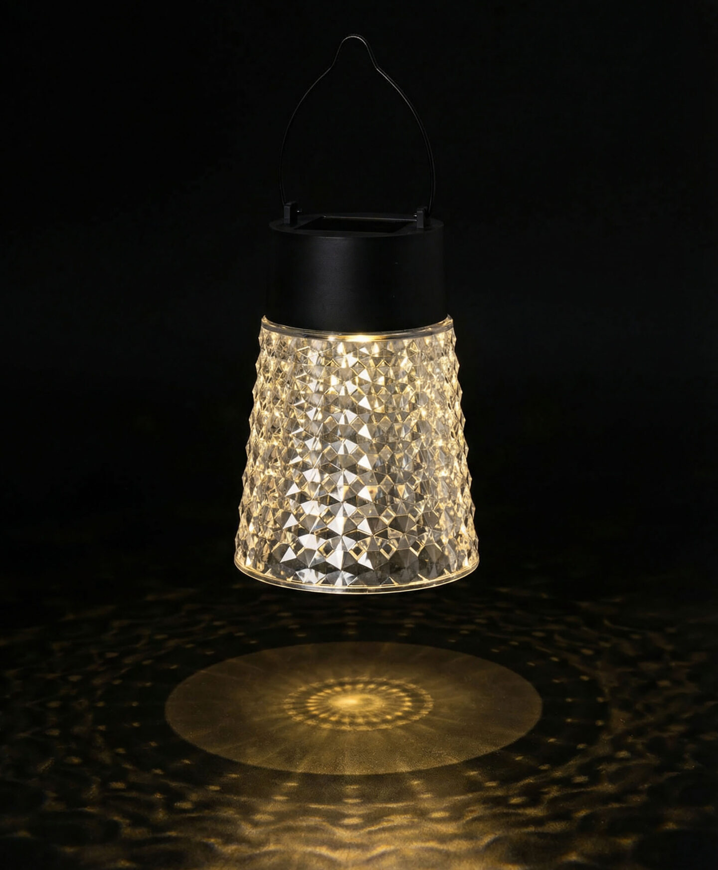 Závesné solárne svetlo s krištáľovým tienidlom zaujme každého milovníka krásnych doplnkov. Svetlo je napájané solárnou energiou a vďaka vstavanému solárnemu panelu funguje bez káblov a batérií. Tienidlo vyrobené z kryštálov rozptyľuje svetlo krásnym a umeleckým spôsobom. Svetlo je vybavené praktickou rukoväťou, ktorá umožňuje zavesenie na konár stromu, tyč, pod strop alebo na špeciálny stojan. Automaticky sa zapne za súmraku a vypne za úsvitu, čím poskytuje bezúdržbové osvetlenie počas celej noci.